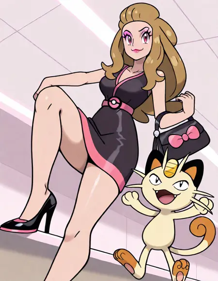 (Optional) Accessories: black handbag, poke ball (basic), sunglasses, eyewear on head