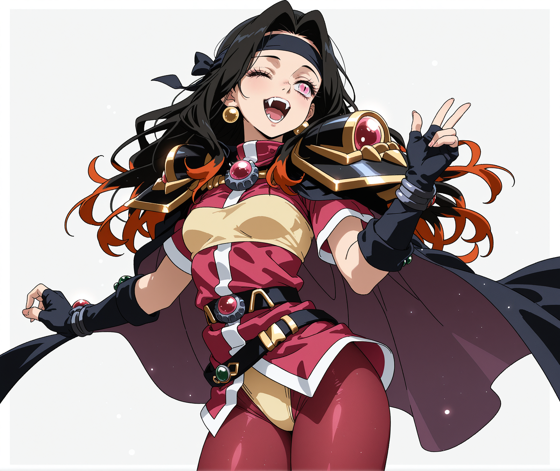 - 胸、シャツ、手袋、ジャケット、短い袖、黒い手袋、指なし手袋、キャップ、アーマー、黒いベルト、ベルト、レオタード、赤いシャツ、宝石、肩甲板、多色の服、赤いジャケット、パウルドロン、黒いキャップ、太もも、タイツ、ズボン、赤いズボン、