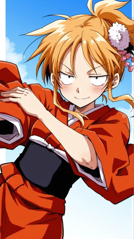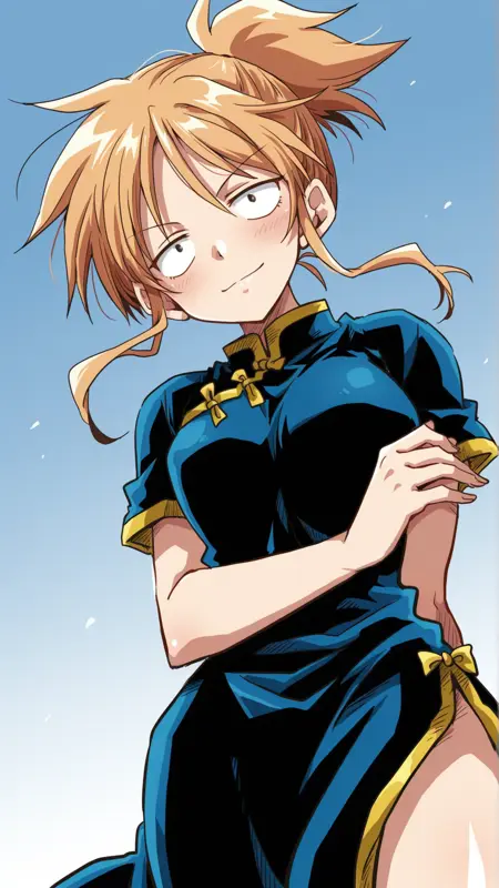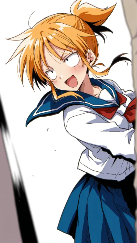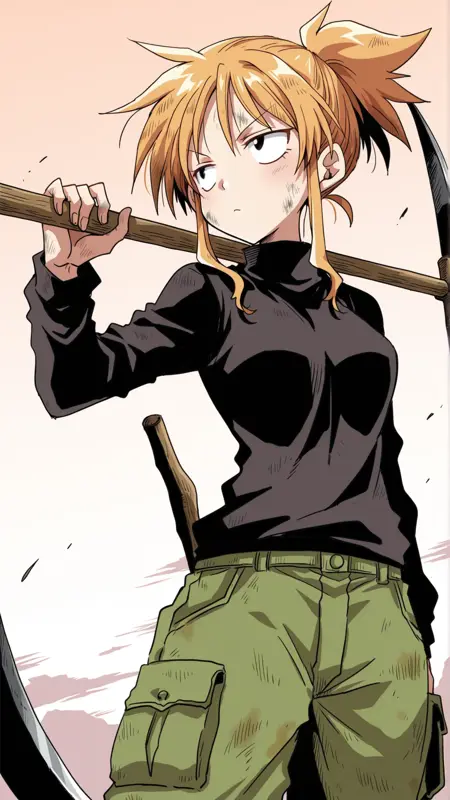 外观:马尾辫、鬓发、金发、黑眼、sanpaku,