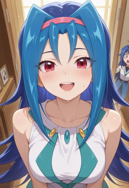 Trigger Words: rio kastle, long hair, blue hair, red eyes