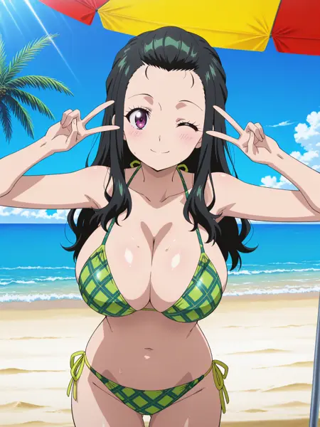 如果发色看起来与动漫略有不同,可尝试使用 黑色头发,带绿色光泽的头发