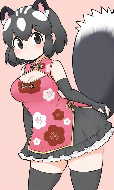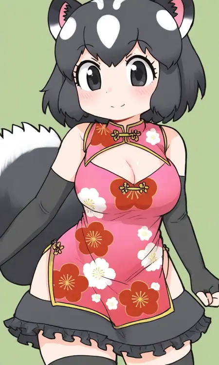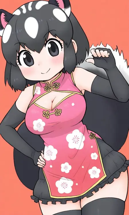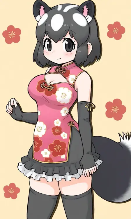 けものフレンズ3より、はなまるチェンジ♪フレンズのうち、 【連撃の極意】ジャガー 【やってみる・・・!】マレーバク 【一撃の極意】ブラックジャガー 【一撃のポーズぅ!】ミナミコアリクイ の衣装であるチャイナドレスを再現したLoraです(^_^)