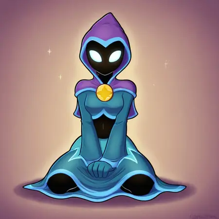 Star strike(character), mouthless, female, mystical outfit, midriff, black body, no pupils,