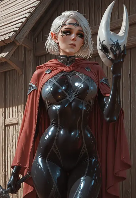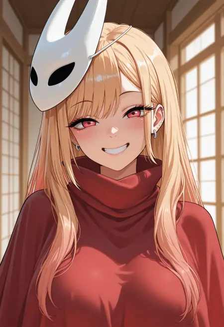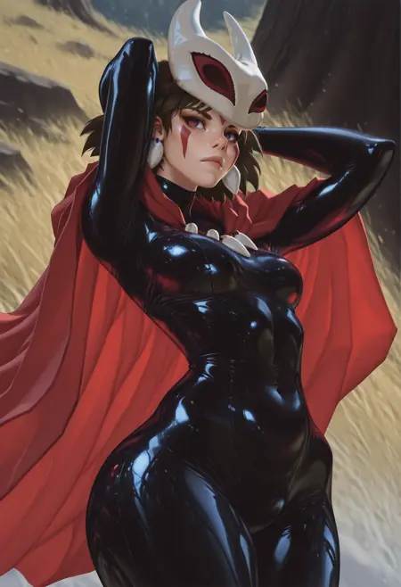 「mask on head」:マスクを顔を覆わずに頭に置く。マスクが顔をあまりにも覆いすぎてしまう場合は、目や口などの顔の特徴をプロンプトに追加してください。