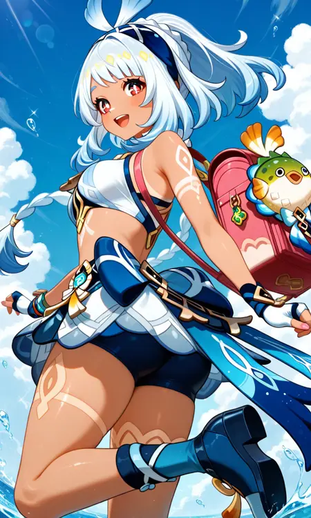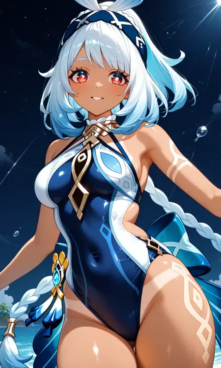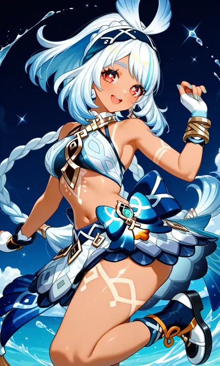 | 训练词汇 | mualani (genshin impact), red eyes, white hair, blue hair, gradient hair, long hair, ponytail, twin braids, multicolored hair, short hair, very long hair, short hair with long locks, braided ponytail, low twin braids, dark skin, dark-skinned female, sidelocks, bright pupils, eyebrows visible through hair, headband, blue hairband, tan, bangs, tanlines, body markings, breasts, médium breasts, Thighs, nail polish, symbol-shaped pupils,已复制! halterneck, bikini top, crop top, white bikini, white gloves, bracelet, fingerless gloves, bodypaint, showgirl skirt, waist cape, tassel, bow, shorts under skirt, black shorts, navel, bare shoulders, sandals, toeless legwear, kneehighs, blue kneehighs, blue legwear,已复制! multicolored crop top, white crop top, blue crop top, jewelry, midriff, white gloves, fingerless gloves, multicolored skirt, white skirt, blue skirt, bow skirt, back bow, body markings, blue footwear,已复制! multicolored crop top, white crop top, blue crop top, jewelry, midriff, white gloves, fingerless gloves, multicolored skirt, white skirt, blue skirt, bow skirt, back bow, pink backpack, animal bag, puffer fish, from behind, body markings, blue footwear,已复制! two-tone swimsuit, blue one-piece swimsuit, white one-piece swimsuit, print swimsuit, bare shoulders, side cutout, body markings,已复制! |