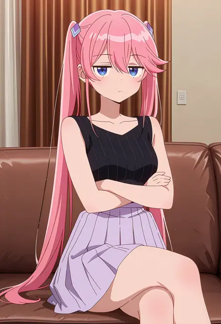 OukaDressOne, 锁骨, 罗纹衬衫, 无袖衬衫, 黑色衬衫, 百褶裙, 浅紫色裙子