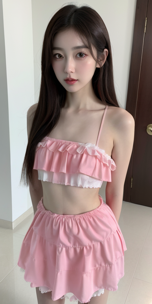 提示词:pink-swimsuit, skirt, swimsuit, bikini, frills