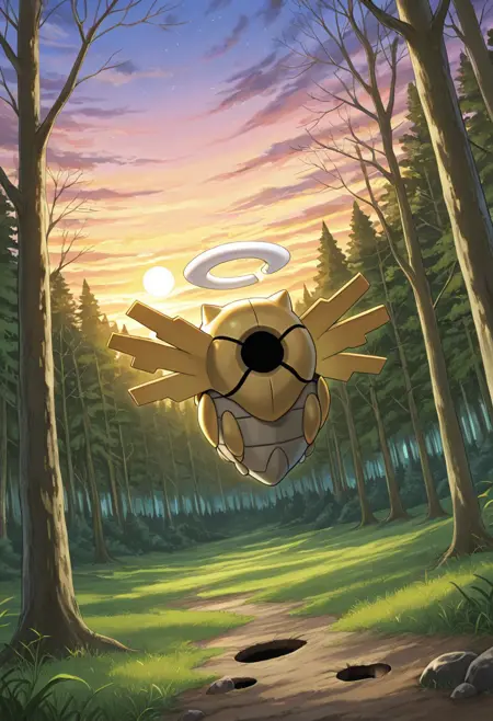 Shedinja_pkmn, brown skin, crescent halo, floating