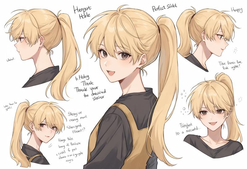 外見: 1人娘、黒い目、茶色い目、金髪、前髪