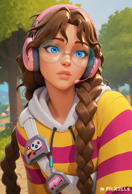 :pixelle (fortnite),长发,棕色头发,蓝眼睛