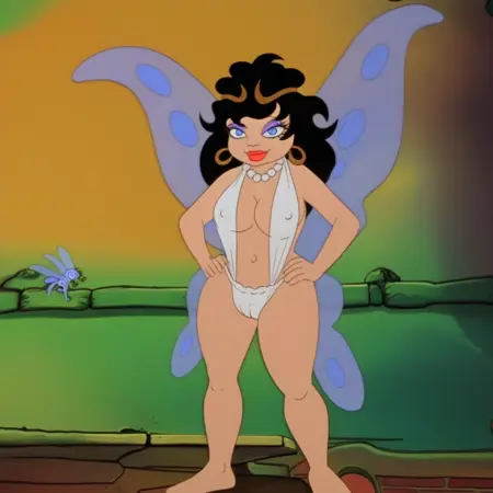 | 训练词汇 | elinor, big hair, black hair, bare legs, bare shoulders, barefoot, blue eyes, blue wings, large breasts, butterfly wings, cleavage, eyeshadow, fairy, fairy wings, red lipstick, long hair, makeup, earl bead necklace, hoop earrings, jewelry, strip, slingshot swimsuit, in the yellow brick wall, masterpiece, hands on hips, smile, medium thighs, big ass, cameltoe, looking at viewer, upperbody已复制! |