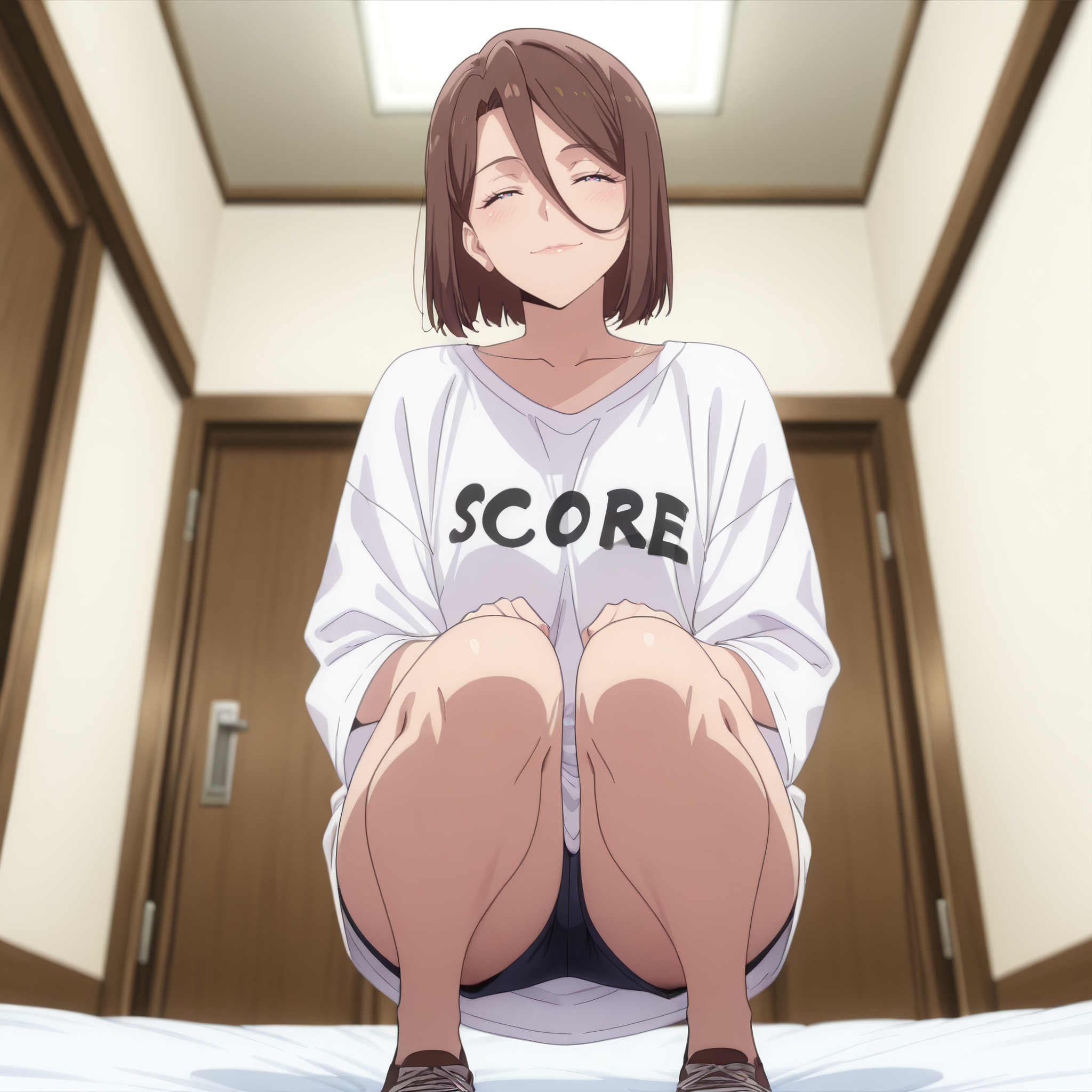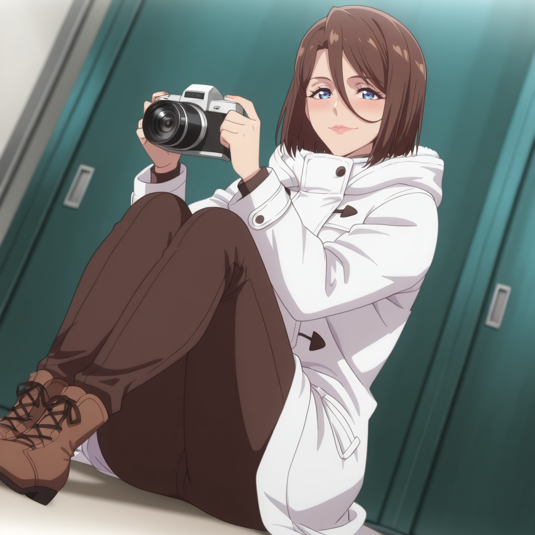 YumikaSakuraba,蓝眼睛,棕色头发,短发,头发遮住眼睛,