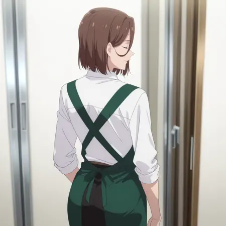 YumikaWorker,白色衬衫,绿色围裙,有领衬衫,