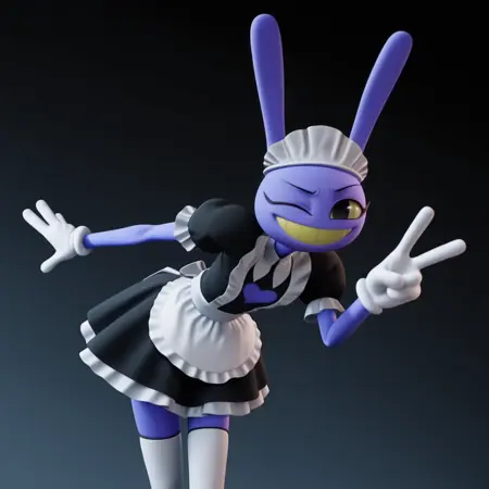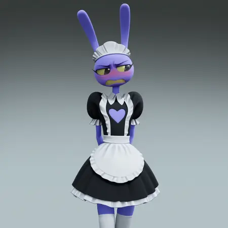 | 训练词汇 | 1boy, male, furry male, anthro, rabbit, solo, purple body, yellow sclera, rectangular-shaped pupils, yellow teeth, rabbit ears, long ears, no nose, no tail, barefoot, tall已复制! red overalls, yellow buttons, yellow gloves已复制! black headwear, black visor cap, yellow gloves, nametag, black shirt, short sleeves, black apron, black pants, black shoes已复制! maid headdress, black maid outfit, puffy sleeves, frills, short sleeves, white gloves, white apron, white thigh highs, black shoes已复制! |