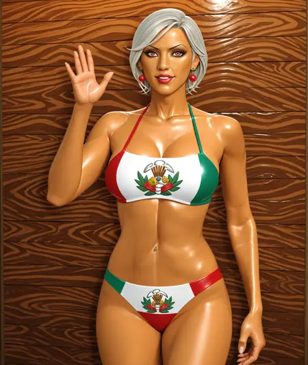 このモデルは「半分だけ」機能する。メキシコの国旗がどんなものか、私はあまり詳しく覚えておらず、改めて調べる気もない。なぜなら、モデルはその部分で別の紋章パターンを生成しており、各画像でそれが異なるのは明らかだからだ。強度を上げれば修正できるかもしれないが、ステップ数の問題ではないと思う。これらのフラッグビキニについては、20枚の画像を45回繰り返すという、正直言ってかなり過剰な設定で、何とか動作するようになった。ブラジルのものはそれに近いレベルでうまくいった。