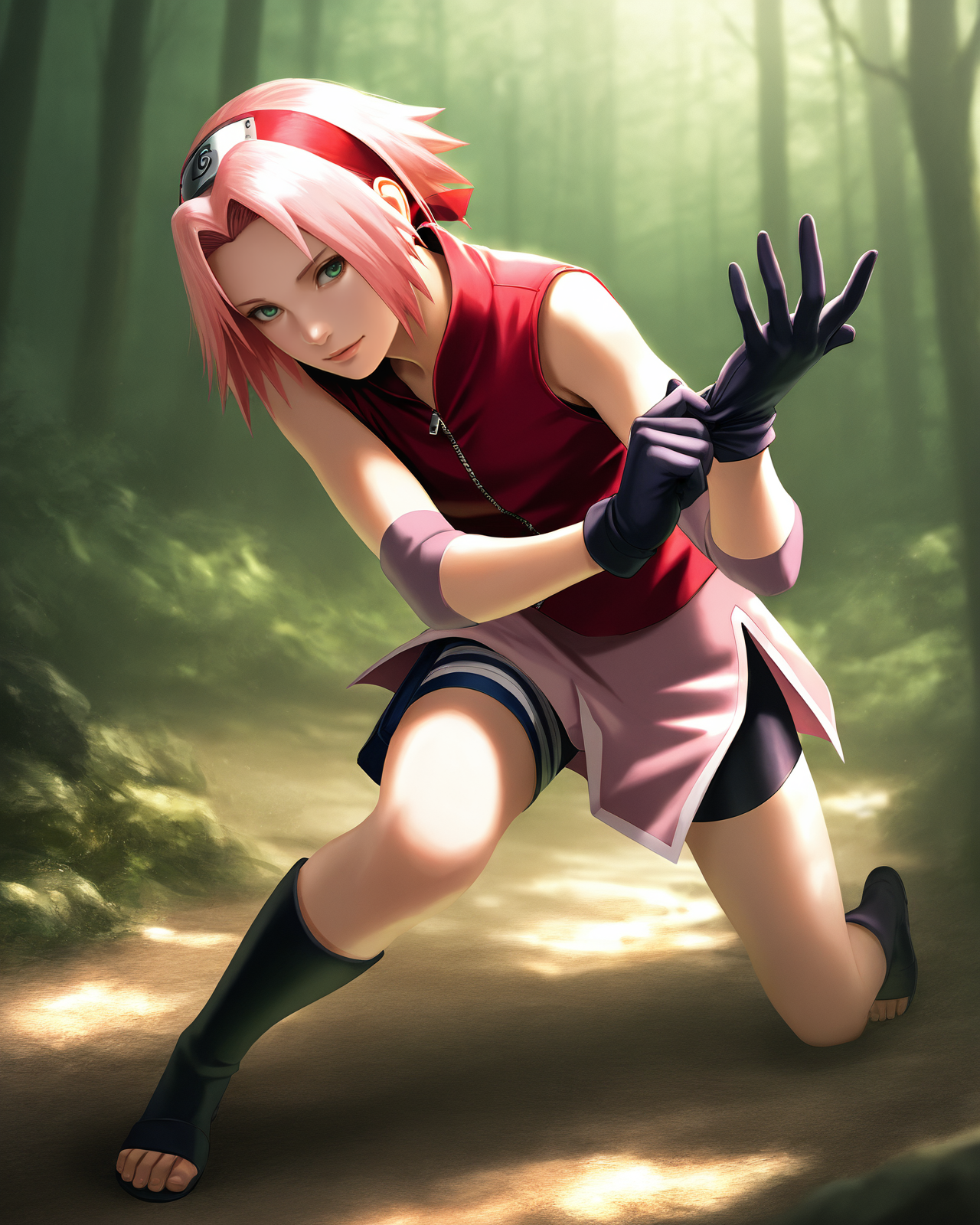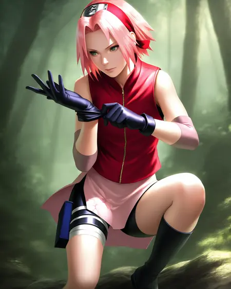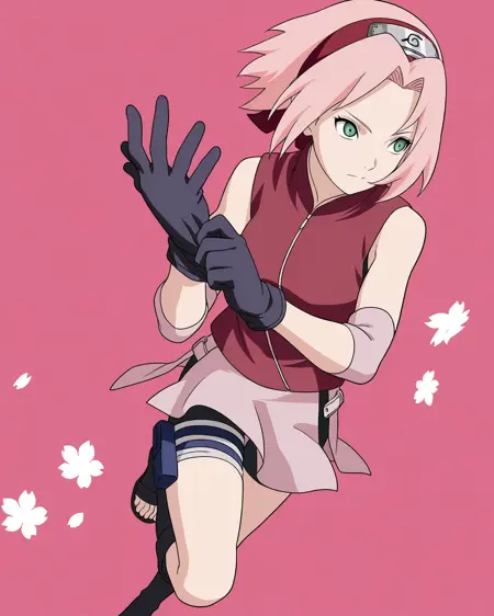 | トレーニングワード | Sakura, 1girl, solo, short hair, green eyes, pink hair, parted bangs,コピーしました! black gloves, miniskirt, black footwear, sleeveless shirt, short shorts, headband, black shorts, knee boots, red shirt, bike shorts, red jacket, forehead, pink skirt, zipper, adjusting clothes, red hairband, zipper pull tab, ninja, sleeveless jacket, forehead protector, toeless footwear, red headband, overskirt, adjusting gloves, konohagakure symbol, elbow sleeve,コピーしました! |