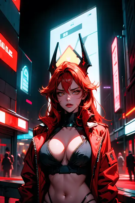 キャラクター - redhoodx, 非常に長い髪, 機械的な角