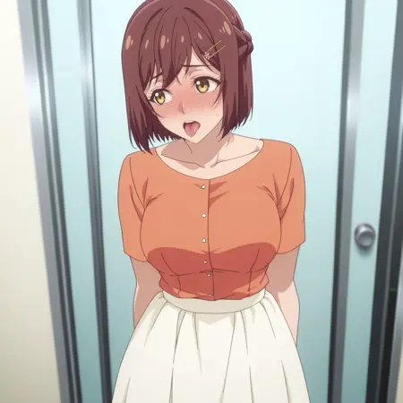 RyoukoCasual,橙色衬衫,短袖,锁骨,长裙,白色裙子,