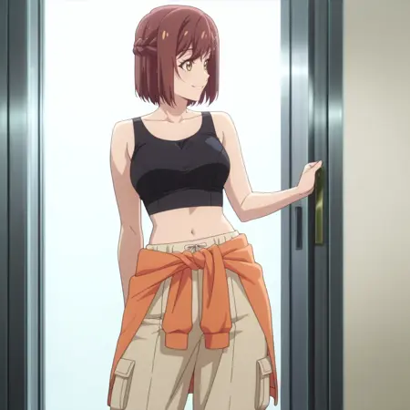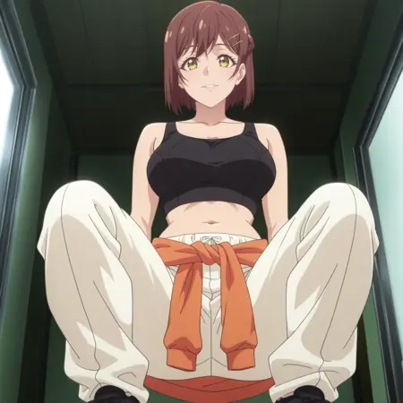 RyoukoTanktop,发带,黑色背心,锁骨,露脐装,腹部,肚脐,腰部衣物,裤子,宽松裤,