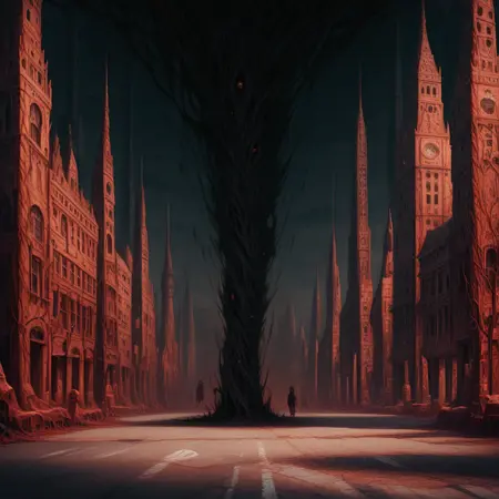 異なる肉の世界の場所を描いた風景的超現実主義の油絵から作られたシンプルなLoRAです。お楽しみください :>