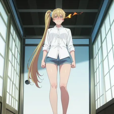 KireiShirt, 흰 셔츠, 드레스 셔츠, 칼라 셔츠, 파란 청바지, 짧은 반바지, 다리 노출,