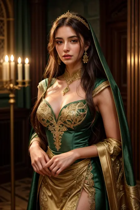 스타일리시한 리얼리즘:fantasy queen, flowing gown, dramatic lighting, cinematic realism, masterpiece
