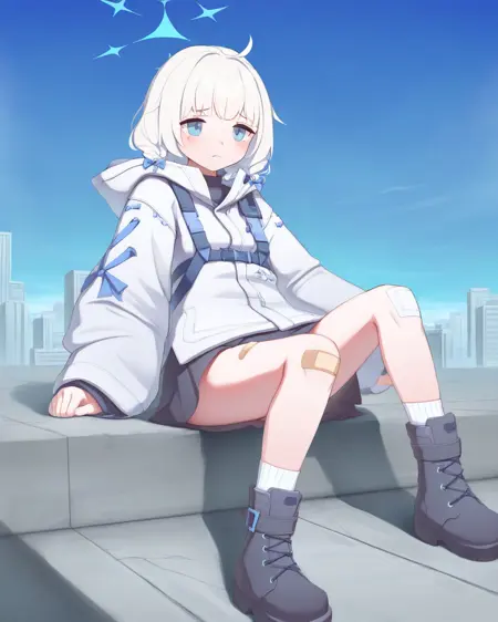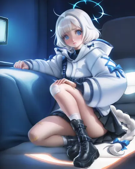 光环,蓝眼睛,白发,短发,翘发,低双马尾,刘海,发带