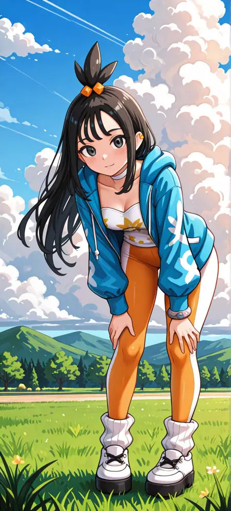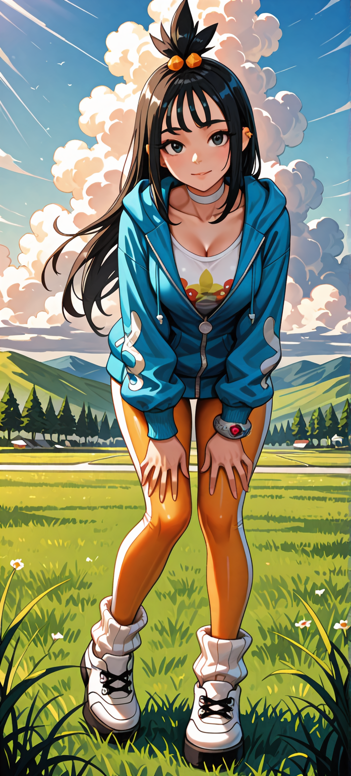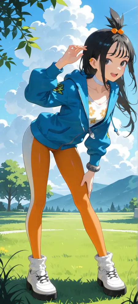 | 학습된 단어 | zalida, lida \(pokemon\), aged up, black hair, black eyes, long hair, bangs, sidelocks, topknot, hair bobbles, ear piercing, partially open jacket, blue jacket, hooded jacket, hood down, zipper pull tab, long sleeves, single bracelet, jewelrly, collarbone, white shirt, print shirt, white choker, yoga pants, two-tone pants, orange pants, white pants, white socks, ribbed socks, loose socks, platform shoes, white footwear, colored shoe soles복사됨! |