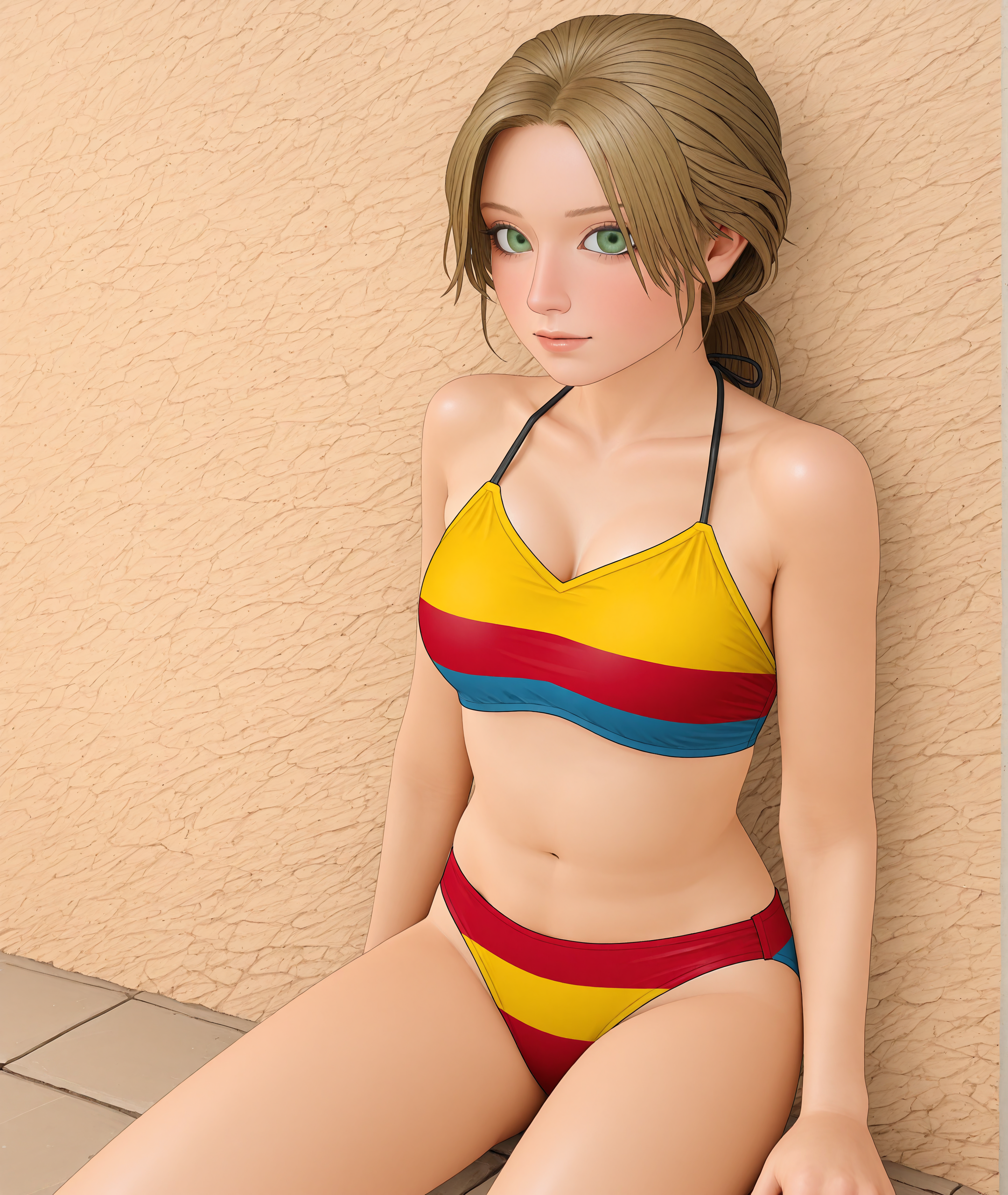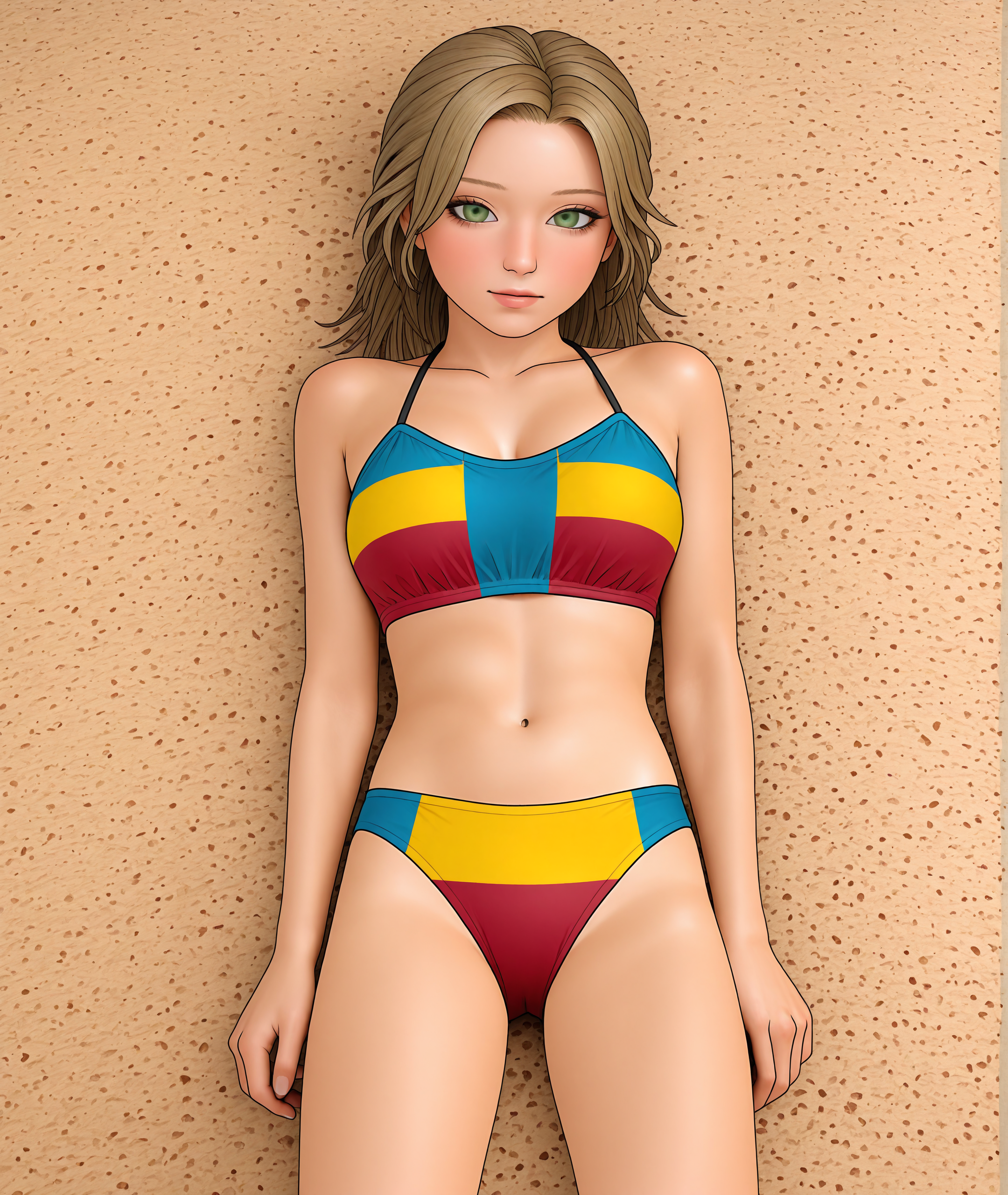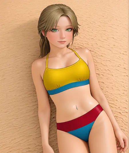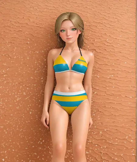 この画像はちょっと壊れたように出ました。ステップを増やしてもあまり役に立たないと思います。これは、有名なモデルの種類自体の問題であり、ビキニの模様の色の順序がおかしいという点だけが実際の問題です。どうすればいいのかさっぱり分かりません。たまたま正しく出る可能性もありますが、ちょっと不思議な感じです。