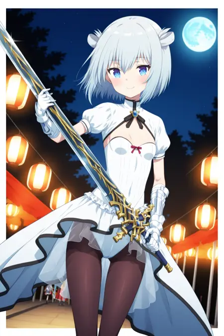 elise angel, blue eyes, silver hair, short hair, hair ring