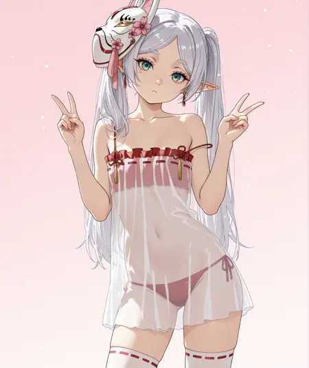 머리에 마스크, 드레스, 투명, 베이비돌, 비키니 상의만, 카미솔, 스트랩 실, 스파게티 스트랩, 프릴 카미솔,