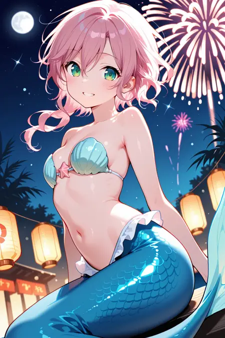 salacha magical dress, mermaid, seashell bikini, long tail, aqua tail