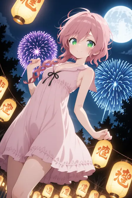nightgown, pink pajamas, pink dress, black ribbon, bare shoulders, sailor collar, sleeveless shirt