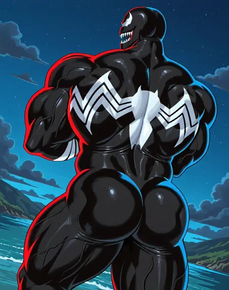 このLoRA向けのプロンプトは以下の通りです:(VenomSC, muscular, symbiote)
