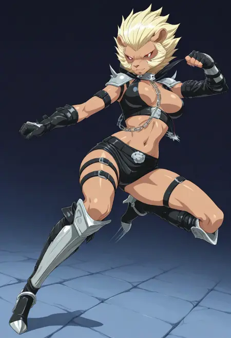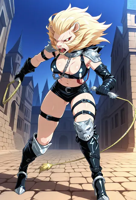 어두운 피부, 금발, 솔처럼 뻗은 머리카락, 사자 머리, 사자 얼굴, 털이 많은, 앤트로, 붉은 눈,