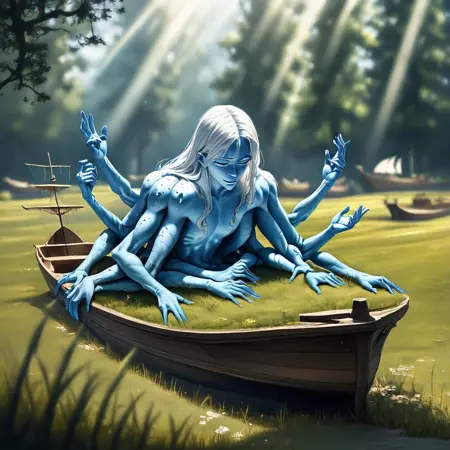 tree, nature, watercraft, forest, boat, scenery, water, dragon, fantasy, outdoors