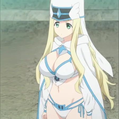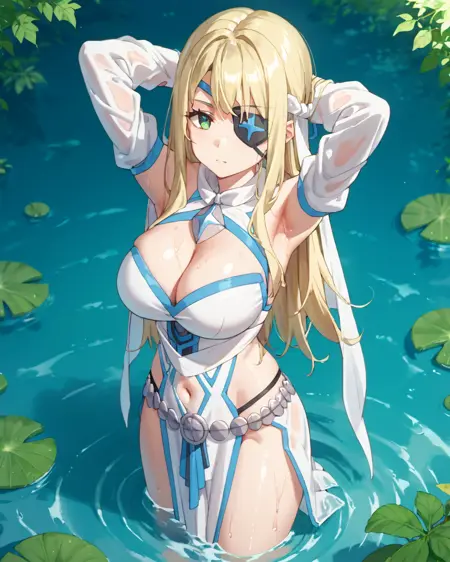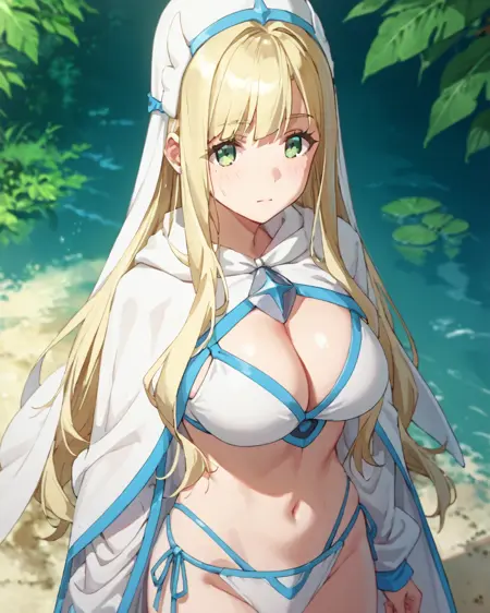 Misery,金发,长发,绿眼,乳房,大乳房,1个女孩,单独,白色比基尼,乳沟,侧系式比基尼下装,丝带