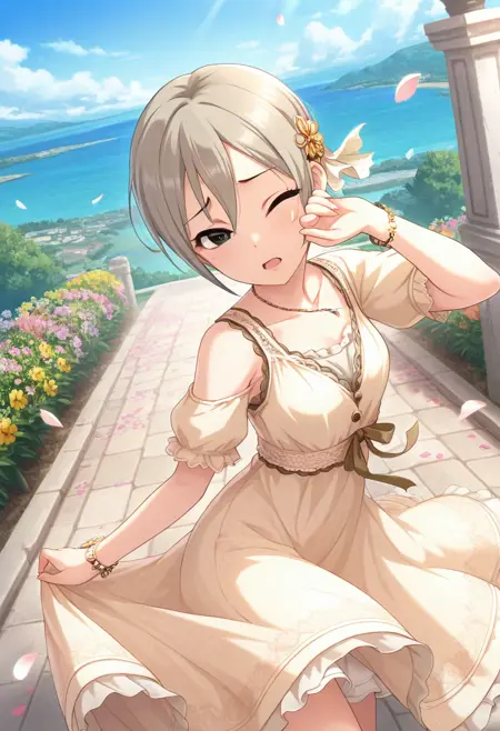 Trigger Words: shiomi shuuko, grey hair, short hair, black eyes