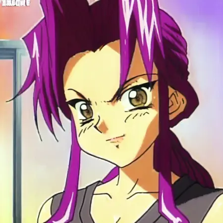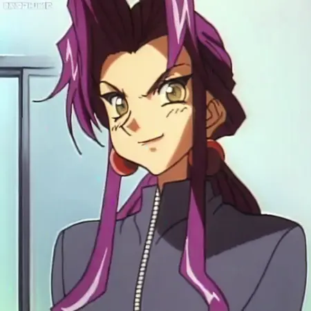 JunGotokuji, 1Girl, Solo, Aged Up, Adult Female, Tallest Height, Tall Woman, 21 Years Old, Magenta (Violet) Hair, Long Hair, High Ponytail, Yellow Elastic on the Back of Her Hair, Long Fringes on Both Sides on Her Head, Brown Eyes, Magenta (Violet) Eyebrows, Large Breasts, D-Size Breast, Rounded Breasts, Red Lipstick, Perfect Face, Perfect Eyes, Perfect Fingers, Sharp Eyeliner, Eyelashes, Outlined Iris, Ombre, Detailed Eyes:1, Makeup, Default Outfit, Long Sleeves Blue Corporate Three Piece Business Suit Vest under a Long Sleeves White Buttoned Collared Shirt, Yellow Necktie, Plain Necktie, Longer Length Skirt, Blue Corporate Business Pencil Skirt, Brown Pantyhose, Black Heels Shoes, retro artstyle, 1990s (style)