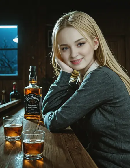 프롬프트에서 그녀의 옷차림이나 장소를 언급하지 않으면, 그녀는 대개 빈티지 바에서 벌거벗은 상태로 나타납니다.