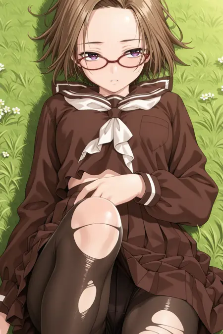 tomoe (accelerando)、紫の瞳、茶色の髪、ショートヘア、眼鏡