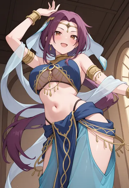 - rukpcsar, 매우 긴 머리, 낮은 말머리, 원형 머리장식, 베일, 하렘 옷, 파란색 크롭 탑, 투명한 하복, 금색 목걸이, 보석, 허리, 팔찌, 팔찌, 셔럴, 골반 커튼, 엉덩이 통, 하렘 바지, 골반 커튼,
