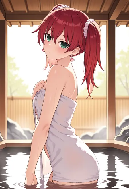 cgnpcav, 긴 머리, 빨간 머리, 녹색 눈, 트윈테일, 귀걸이,