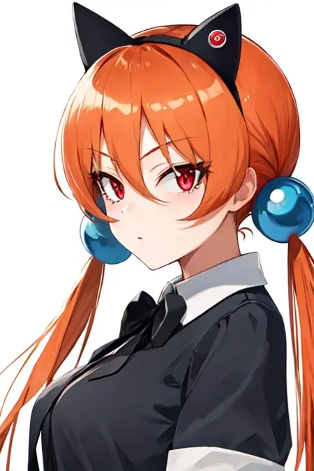 To better reproduce the elements of the character (tsurime:1.3), etc., try emphasizing that tag.