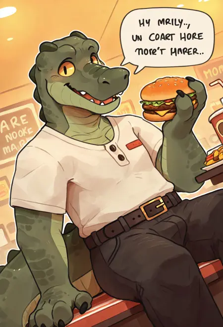 Illustrious: best quality, amazing quality, very aesthetic, absurdres, hires, by donkeyramen, furry male/female, furry, 1boy/1girl, solo focus, ...your tags...