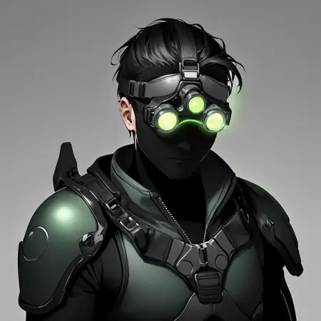 On this Lora I wanted to more or less reproduce the Splinter Cell night vision glasses. It takes several tries before you get good results.