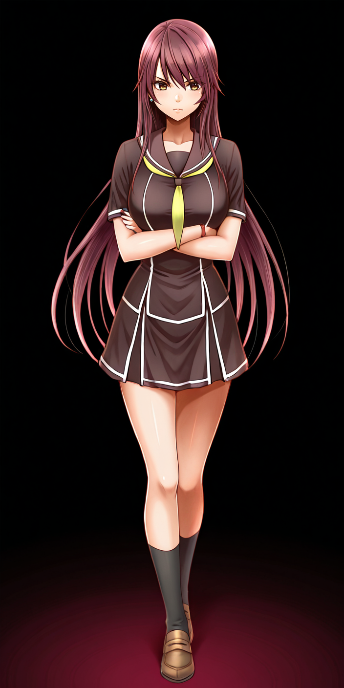 Ayaka Suzumine,long hair,brown hair,brown eyes,large breasts,,school uniform,skirt,