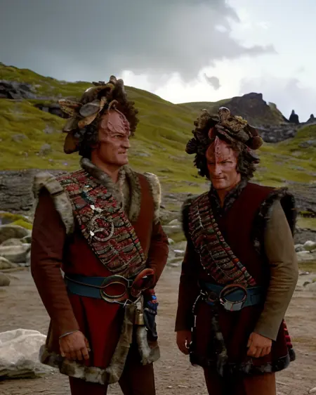 训练中已标注“贾宾”和“库卢”(以及演员姓名)。由于我们从未见到卡宗女性(除了模糊背景中的极少数),因此仅训练了男性角色。不过,你可以通过创意提示生成女性卡宗。