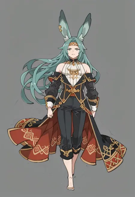• Intricated clothing! Showcases multiple characters in the same image, each with different outfits rich in details and accessories.