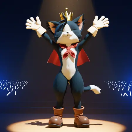 catsitre, cat boy, 장갑, 망토, 눈 감음, 왕관, 부츠, 검은 코, 날카로운 이빨